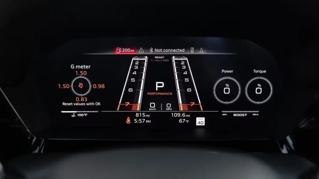 В нём также есть все необходимые удобства, такие как беспроводная связь Apple CarPlay и Android Auto. Под ним расположен дополнительный экран, на котором можно управлять такими функциями, как климат-контроль, настройки для бездорожья и другие настройки экрана. На нём также отображается информация об изменении высоты автомобиля и подвески.