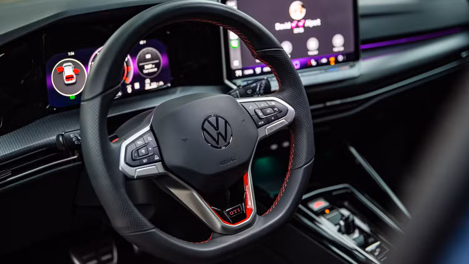 Volkswagen Tiguan SEL R-Line Turbo 2026 года. Экран информационно-развлекательной системы и рулевое колесо