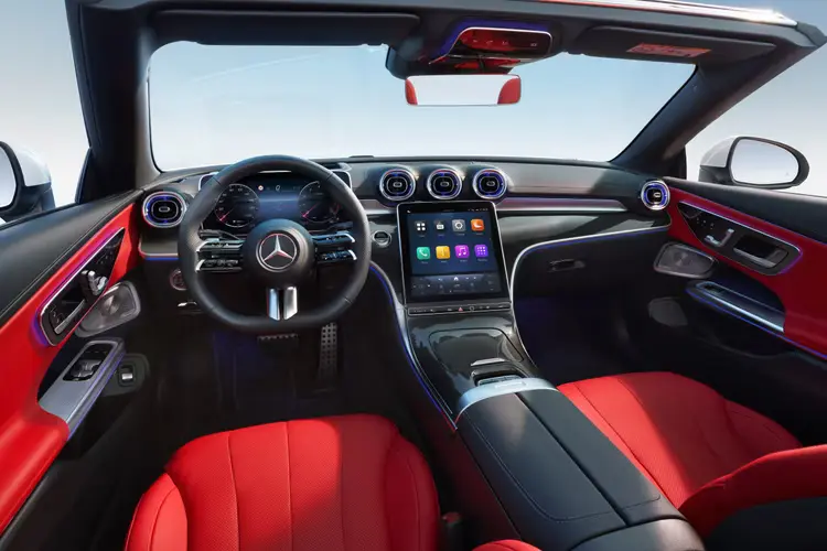 Интерьер Mercedes-Benz CLE 2024 года выпуска можно улучшить с помощью 64 вариантов внешнего освещения приборной панели, подстаканников, верхнего блока управления, дверных ручек и регулировок сидений. Сиденья с высокими спинками в стандартной комплектации оснащены подогревом, а в качестве опции — вентиляцией и массажем.